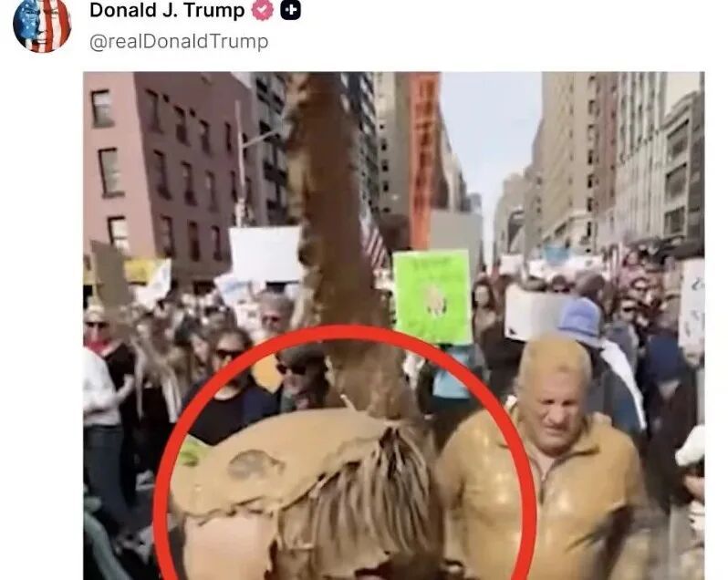 眼看场面愈发失控,总统特朗普不仅不出面安抚,反而发布了一段由AI生成的讽刺视频——视频中,特朗普头戴王冠、驾驶战机,朝示威人群的头顶投放滚滚“泥浆”。